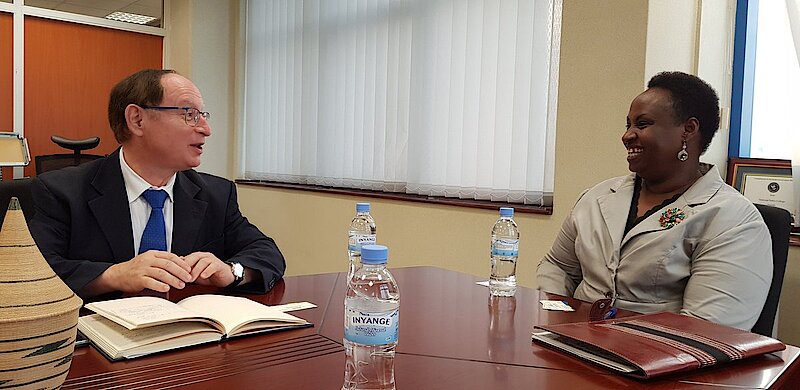 The Israel ambassador was received by Ag. Chief Executive Officer of RGB Dr. Usta Kaitesi. Their conversation focused on exploring areas of collaboration in the governance sector in order to cement cooperation between Rwanda and Israel. Dr. Usta Kaitesi briefed him about different mechanisms that RGB has put in place in order to foster citizens participation and accountable governance, including the annual Citizens Report Card and various service delivery assessments conducted in public, private sector as well as the civil society.