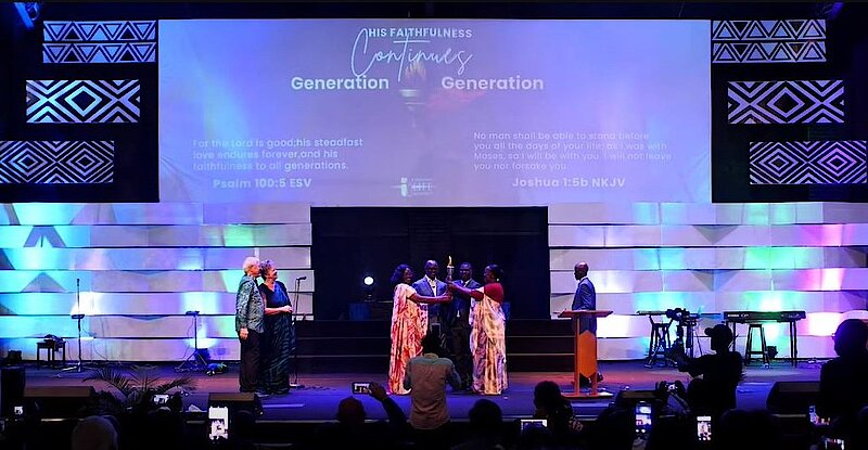 Pr. Andrew Mukinisha passes the torch to Pr. Peter Nkunzingoma during a handover ceremony held on Saturday 3rd Dec. 2022. Looking on are Rev. Elmer and Sherry Komant (left), the founders of CLA.