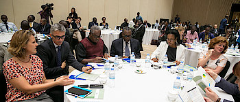 Edward Munyamariza, the President of Rwanda Civil Society Platform (RCSP) looks on during a panel discussion held during the Policy Dialogue with…